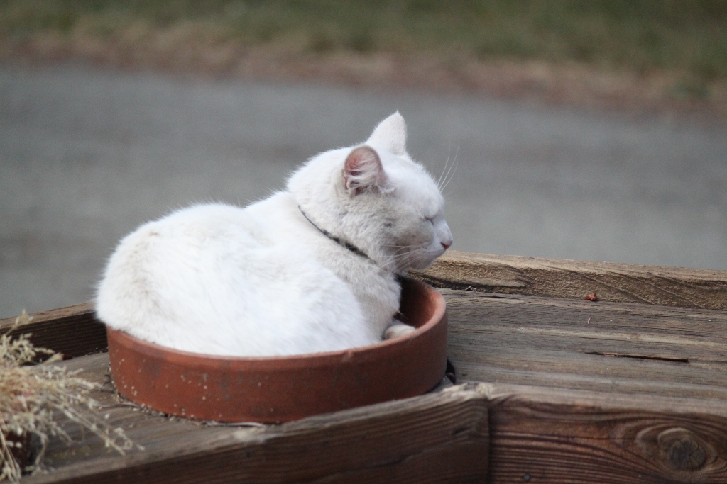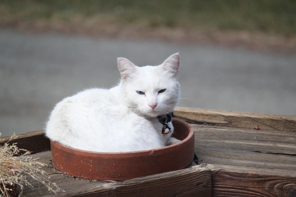 Well, it’s the only thing the deer won’t eat so we planted a bunch of them. No point planting petunias and hydrangea; that’s just deer food. But potted cats are pretty hardy and if you time it just right you can take them in for the winter and they’ll live year round. Next I think we’ll get a bouquet of kittens for a hanging basket.