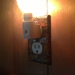 FinishedThe final product looked great.  I mean, not nearly as cheesy as wallpaper covered switchplates and a vast improvement over the shoddy plastic ones I had.  One of the covers I replaced was this resin bas-relief of a moose and a tree that looked like it was a rejected prop from the Red Green Show.  I’d post a photo but it’s too embarrassing.  I didn’t have enough to do all the switchplates in the house but I got most of the visible ones.