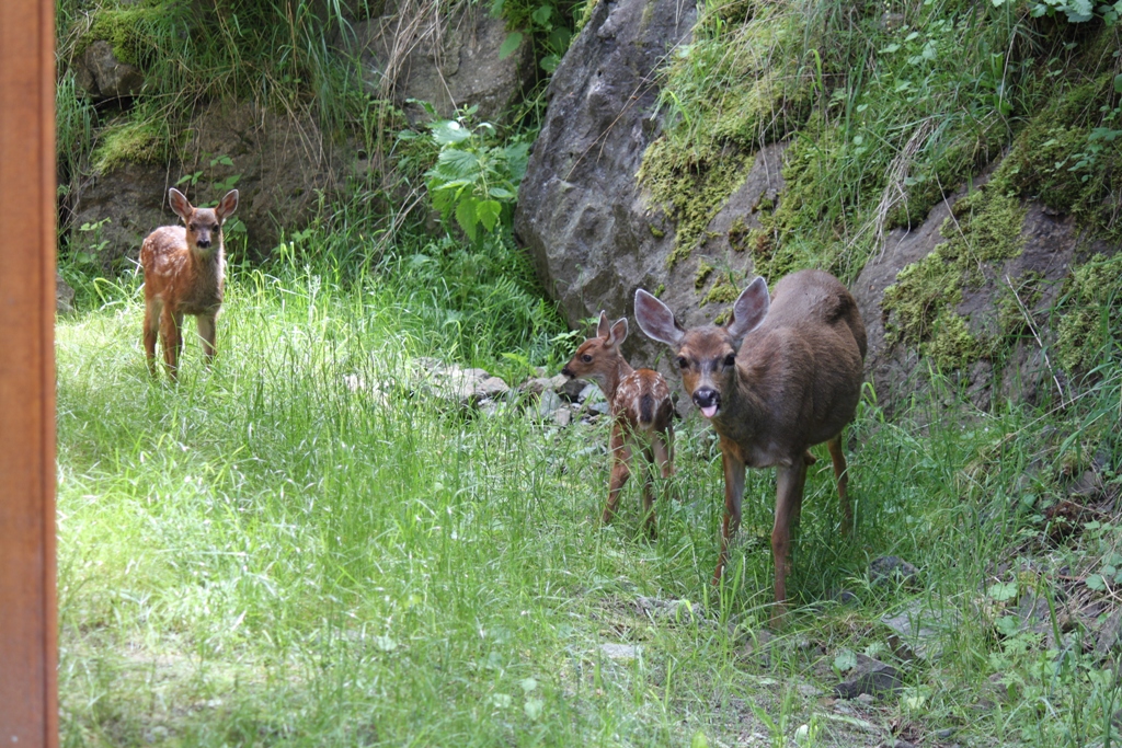 Hide and seekThese fawns are probably just a few weeks old.  They’re tiny little things, not much bigger than our cat.