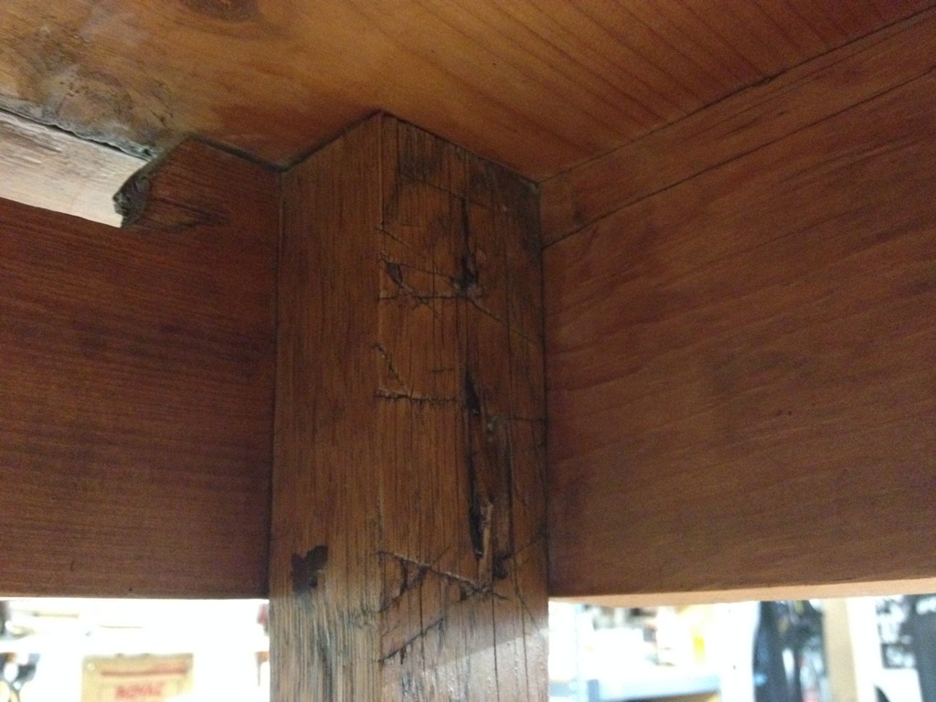 Now, the new configuration of the cabinet doors down there makes the opening wider, by a total of six inches. So, we need a strip of wood 6″ x 24″ to put in there between the doors. This is a pretty good opportunity to go down to a salvage store and find some odd scrap of carved wood that I can integrate into the cabinetry!