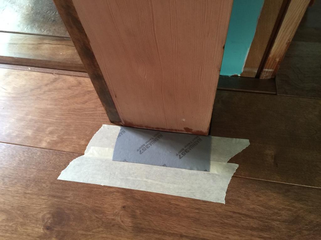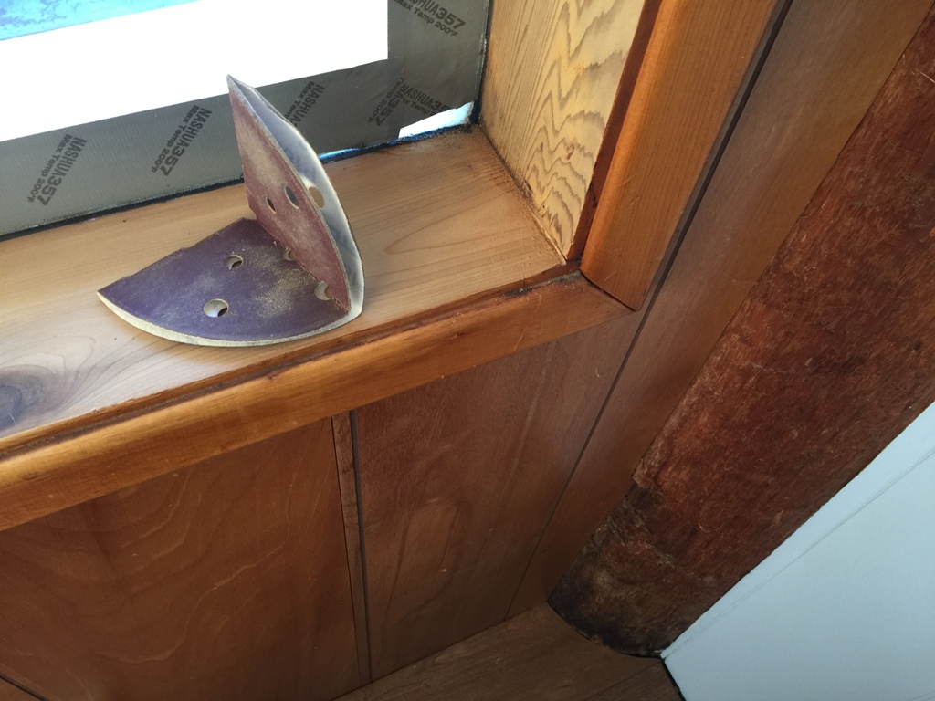 Sanding pads are expensive, so get the most out of them. Even when they’re spent, there’s usually enough grit left on them that you can sand some things by hand. I folded this one up and used it to sand inside the corner that the sander could not reach.