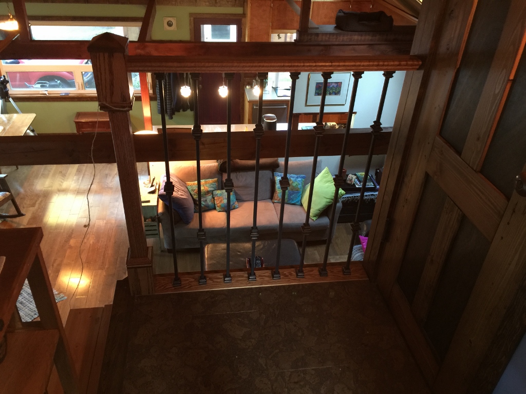 I did say almost finished, because when I ordered the stair balusters I was short one angled shoe. So I can’t finish the handrail install until I get that shoe, and then I have to take the handrail off, put the shoe on the baluster, put epoxy into the nineteen holes in the handrail, carefully reinstall the handrail and bolt it to the posts, and re-tighten all the shoes and fill the holes to conceal the bolts and re-sand and re-stain and drink copious amounts of beer and touch up polyurethane and spar urethane and drink more beer and touch up paint and put some clear caulk in a few joints and tighten the shims that got loosened with use and drink more beer. And then, maybe, this project will be done.