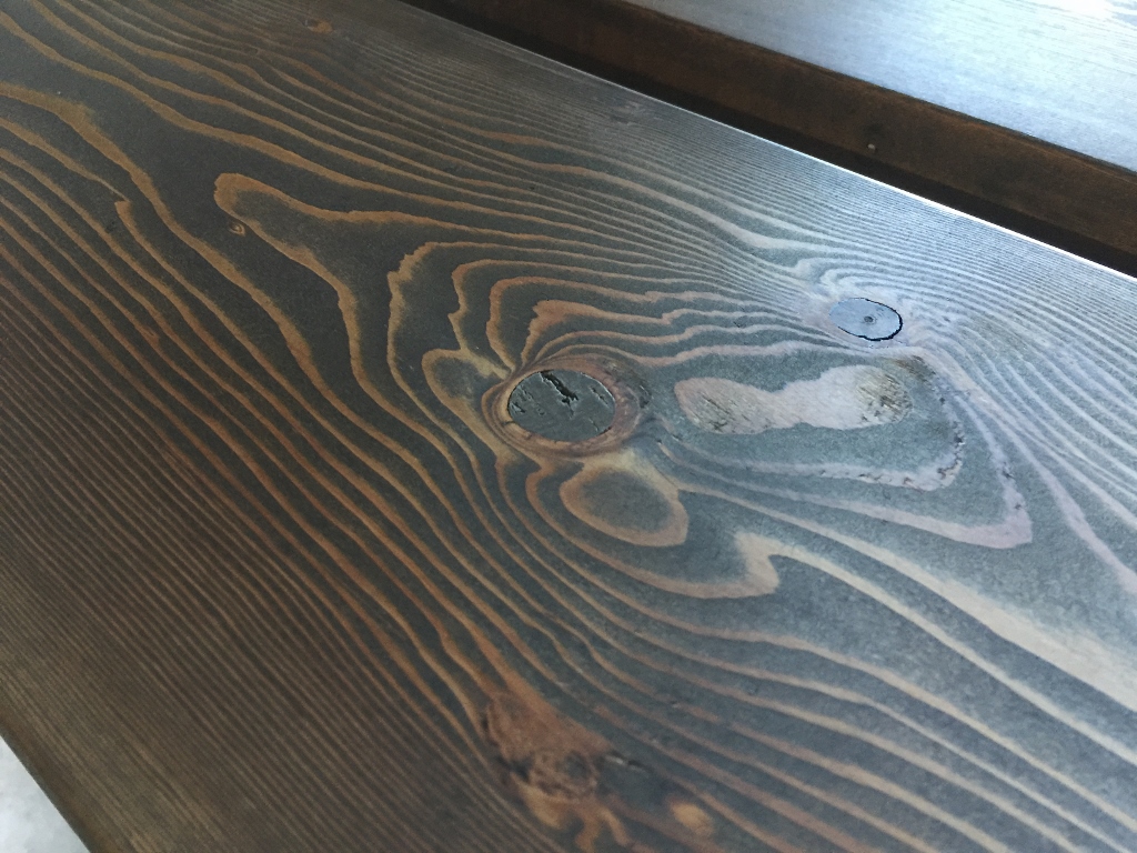 I stained the stair treads dark ebony, and the resulting color is beautiful, rich and varied. There are bands of orange and chocolate and even a little green and yellow in them. The grain was very tight and detailed. They were a real pain to restore but I’m glad I made the effort.