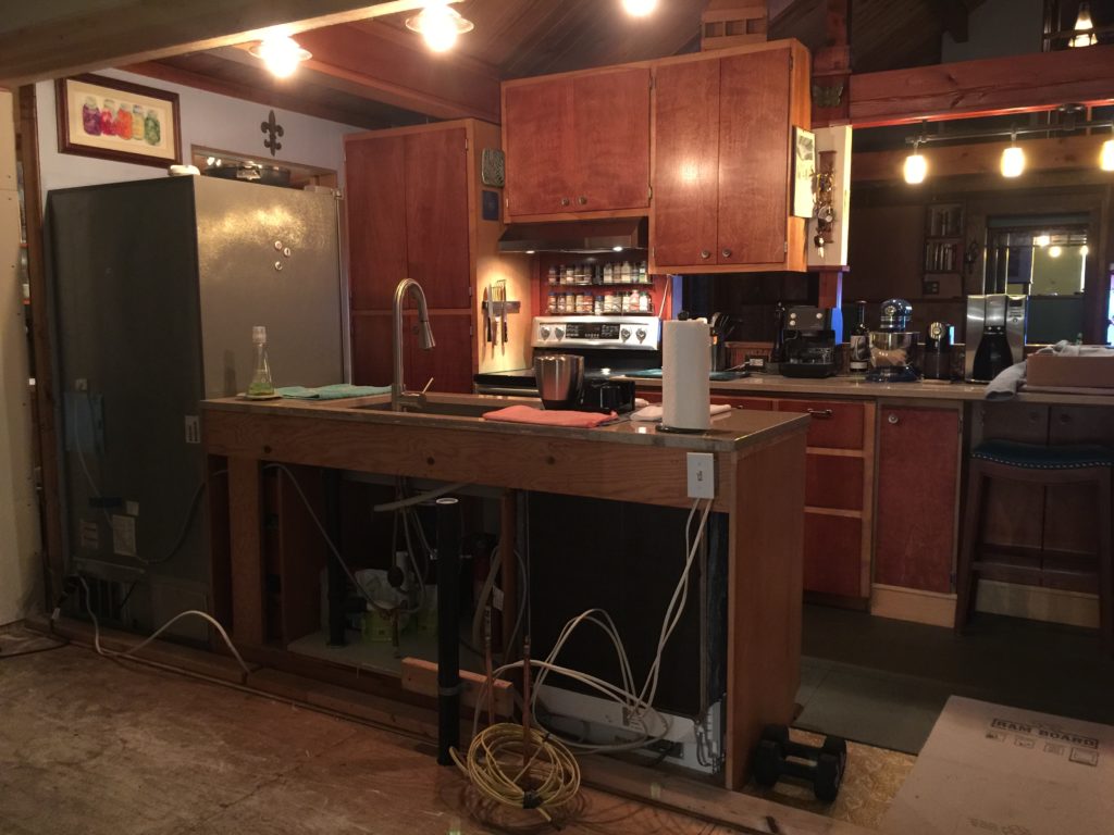 The Unfinished Kitchen Posted on February 18, 2021 by Jef Knowing my luck, a few years after I finish all this, having half a kitchen cabinet in the middle of the floor will be in style.