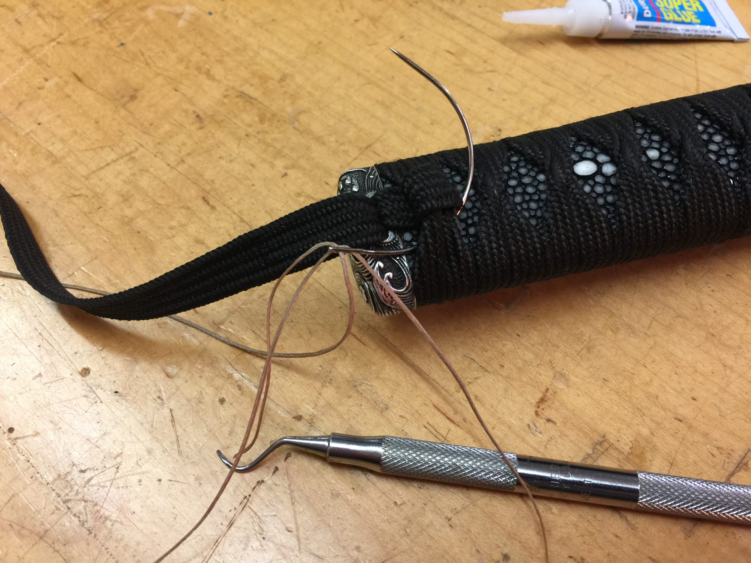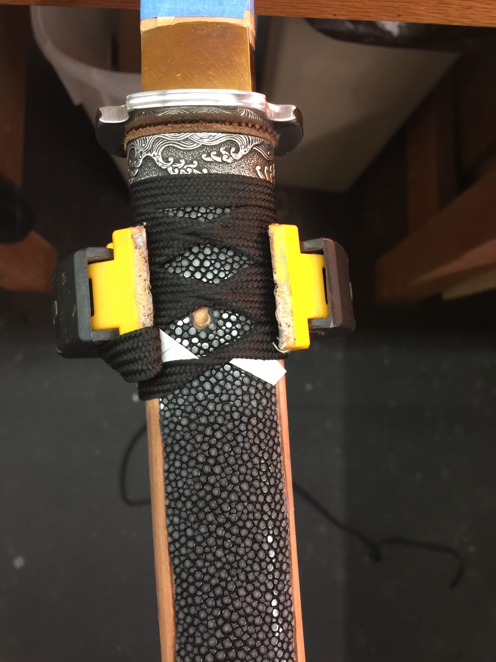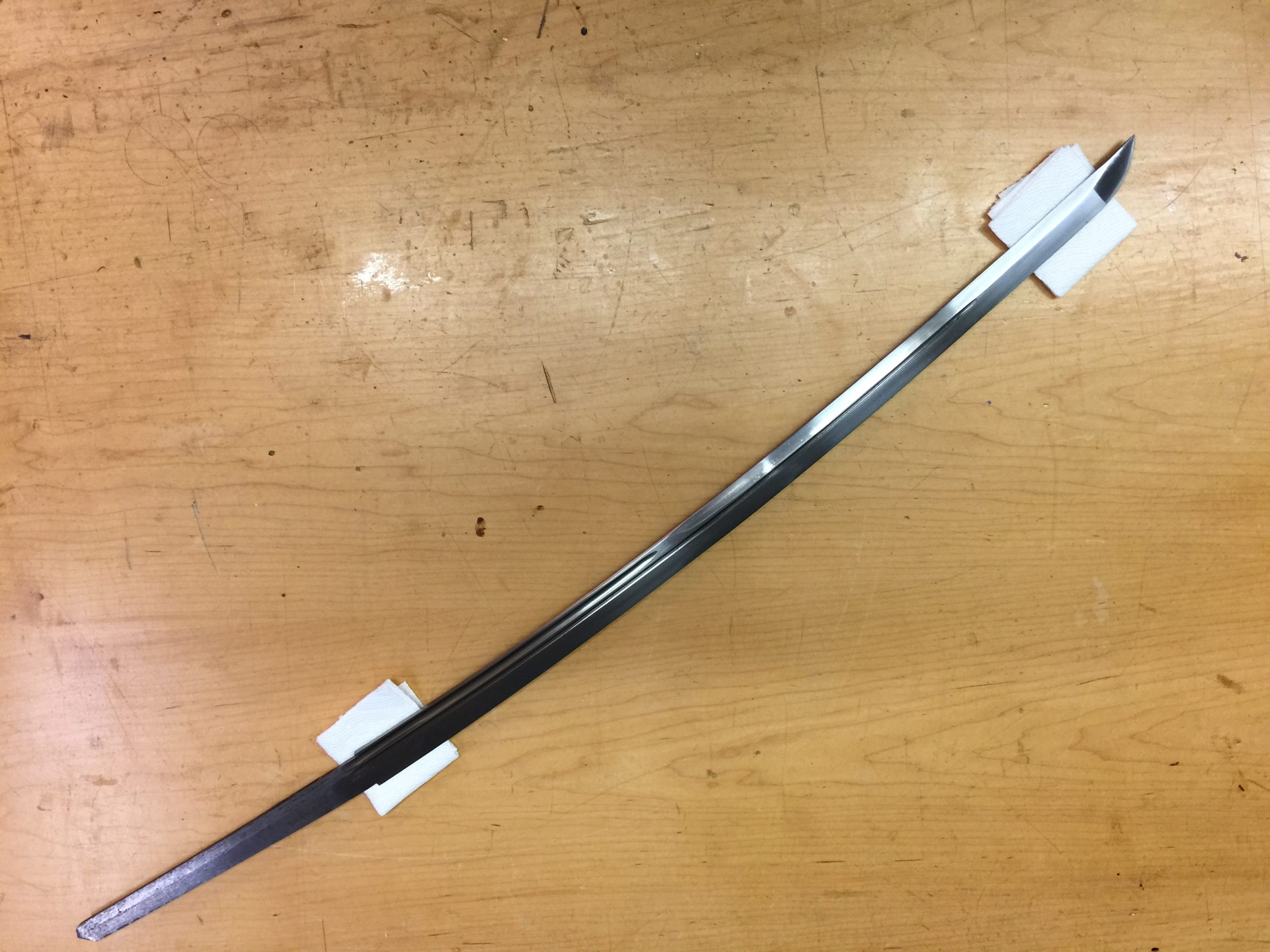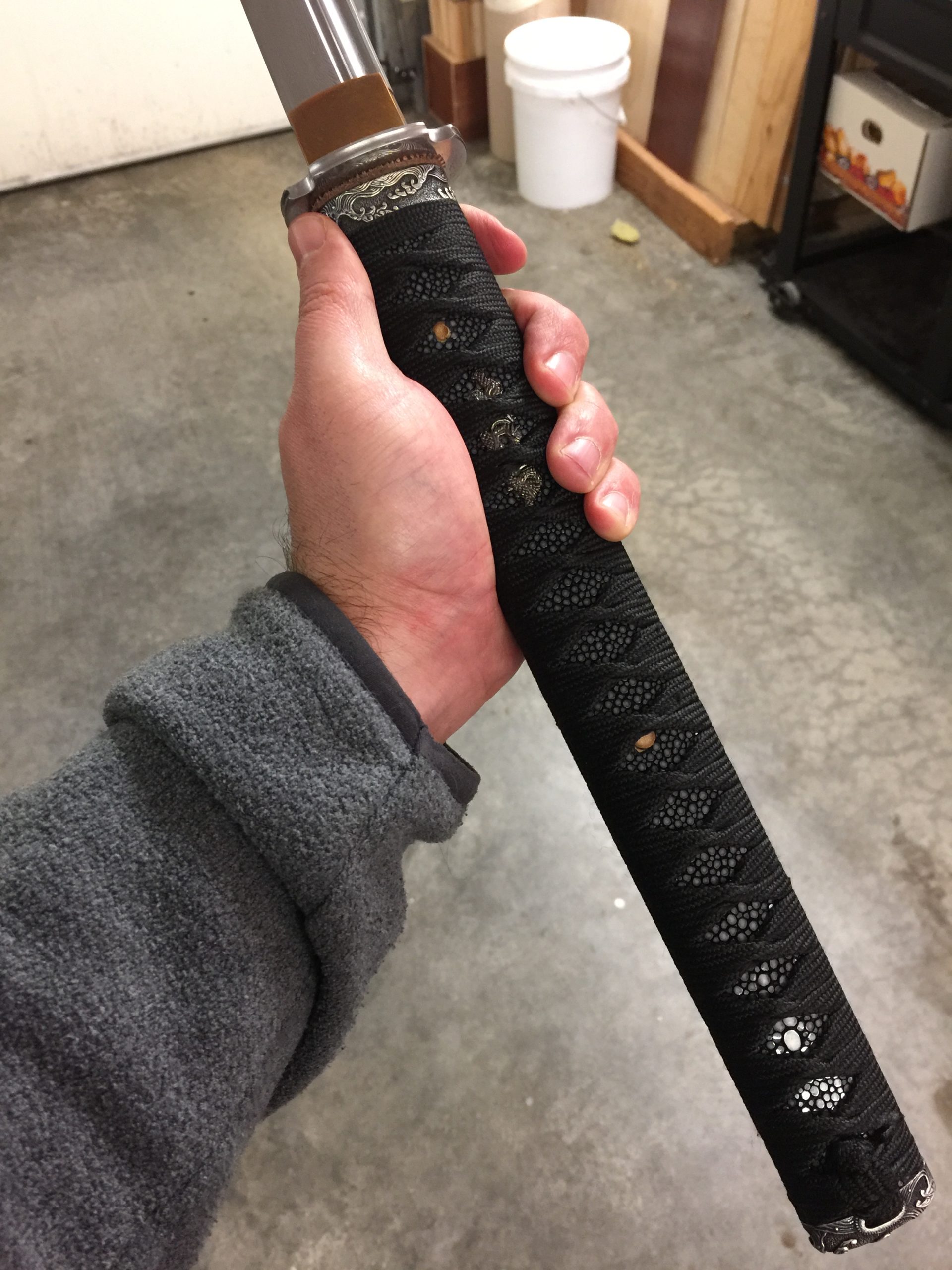 There’s always a little nervousness when the saya is first glued up. If for whatever reason it’s too tight, it is a real pain to make the inside any bigger. You literally have to tape sandpaper to your sword and slowly sand the opening larger until the fit is just right. It takes hours, if not days. Better to just get it right on the first try. This burden is only on those of us who make our saya as snug as I do. Traditionally, they are made a little loose and you don’t have to worry about this.
