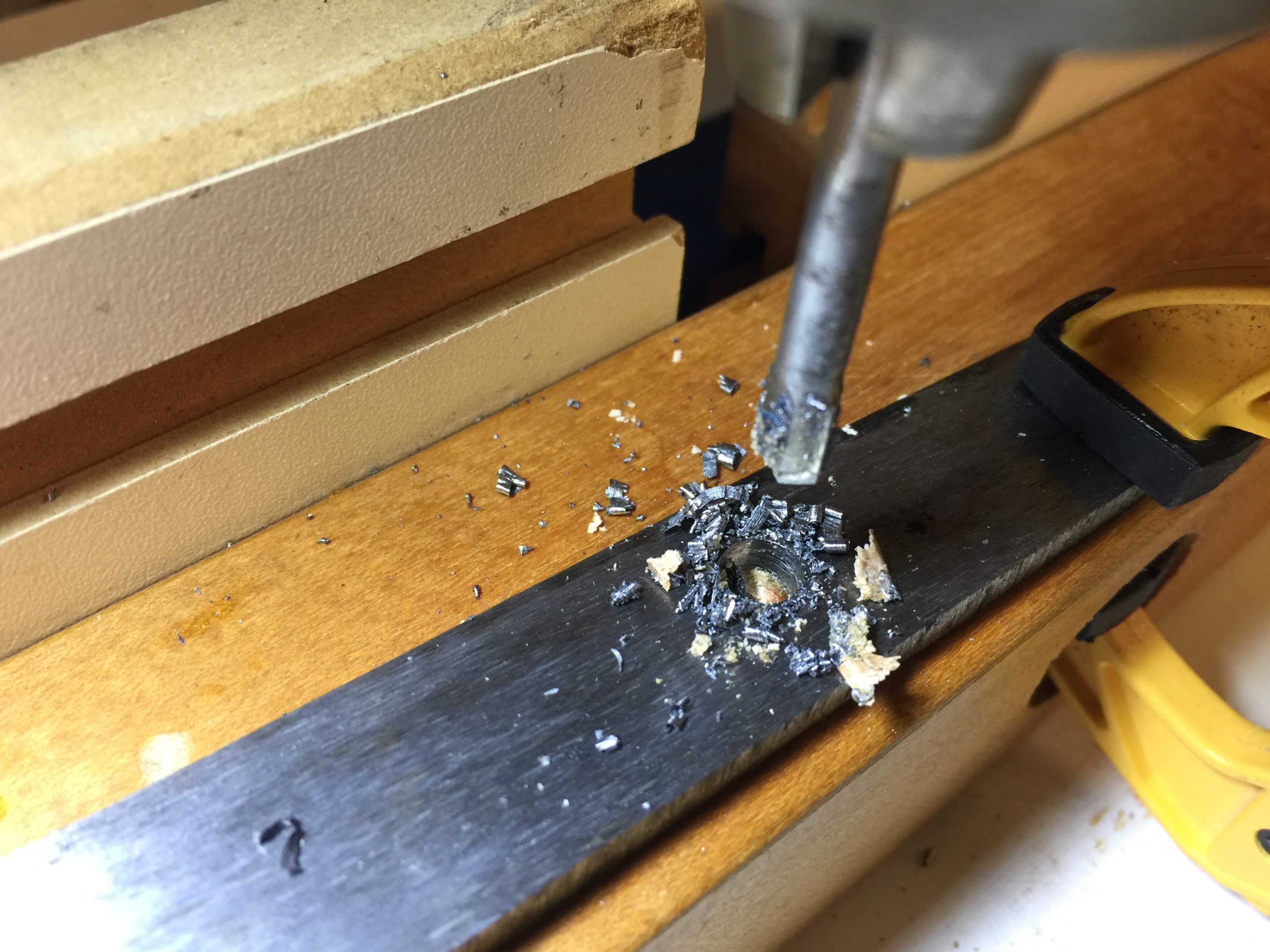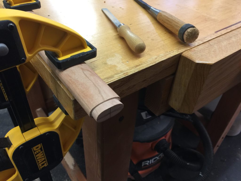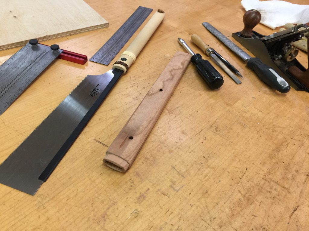 Saya are hand carved. This is again another instance of once thinking I could buy cool power tools and do all this easily but I still use hand tools to do it. I’m making this one from African rosewood. It was hard as a fricking rock and difficult to carve and probably ruined a couple of chisels, but it is a beautiful and strong wood.