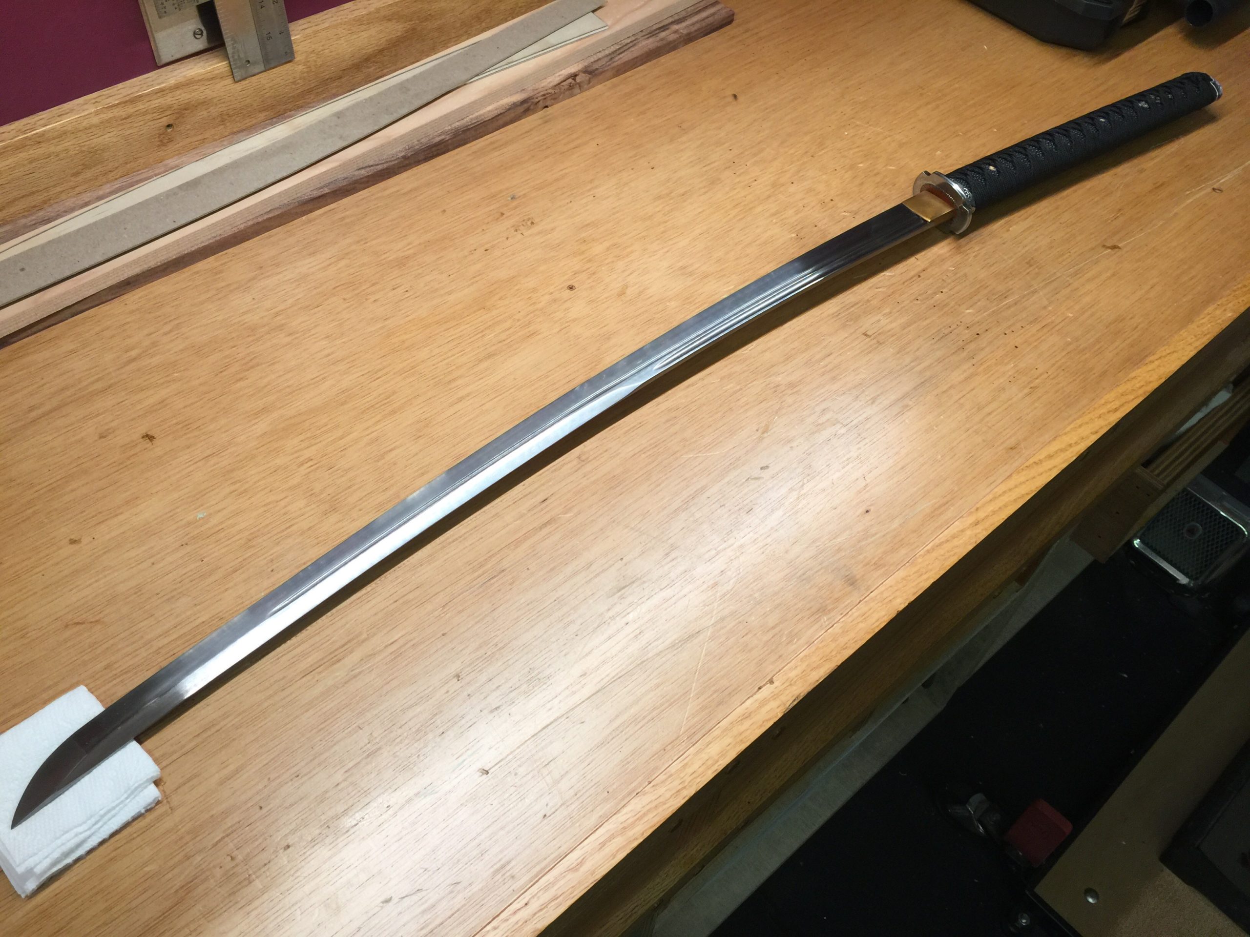 The saya needs a couple coats of tung oil, my personal choice for any martial arts weapon made from wood, and it’ll be ready to go! Up next will be the finished sword.