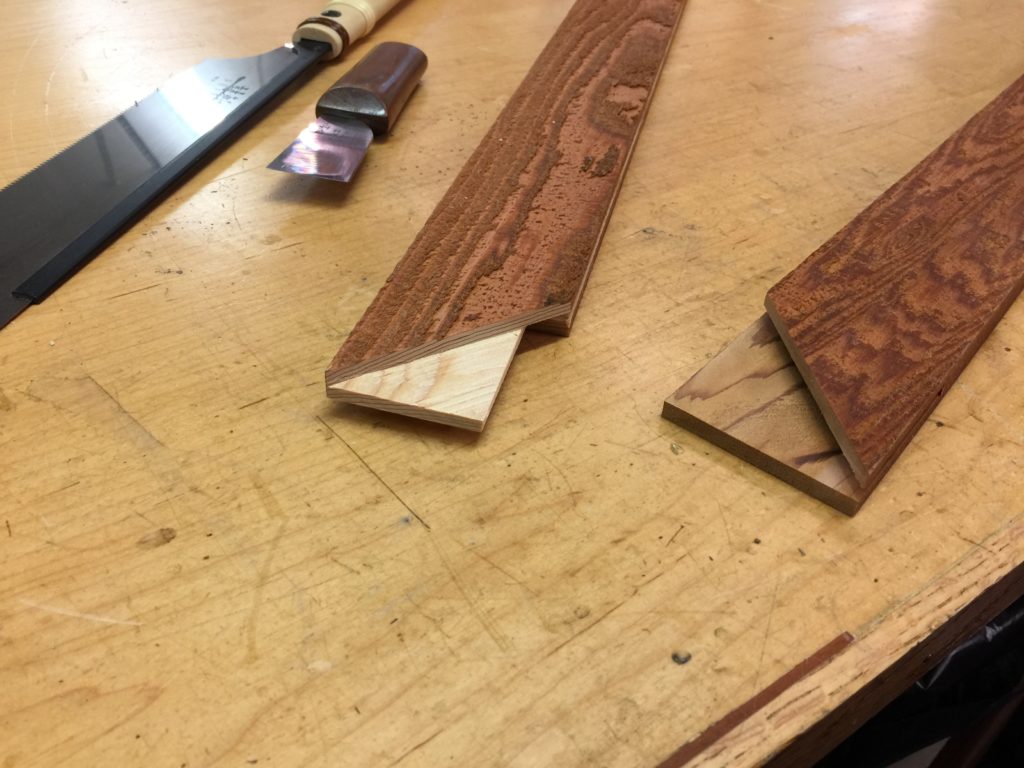 Part miter, part box end, part lap joint, fits together great and the square pins make it look like I did actual woodwork.