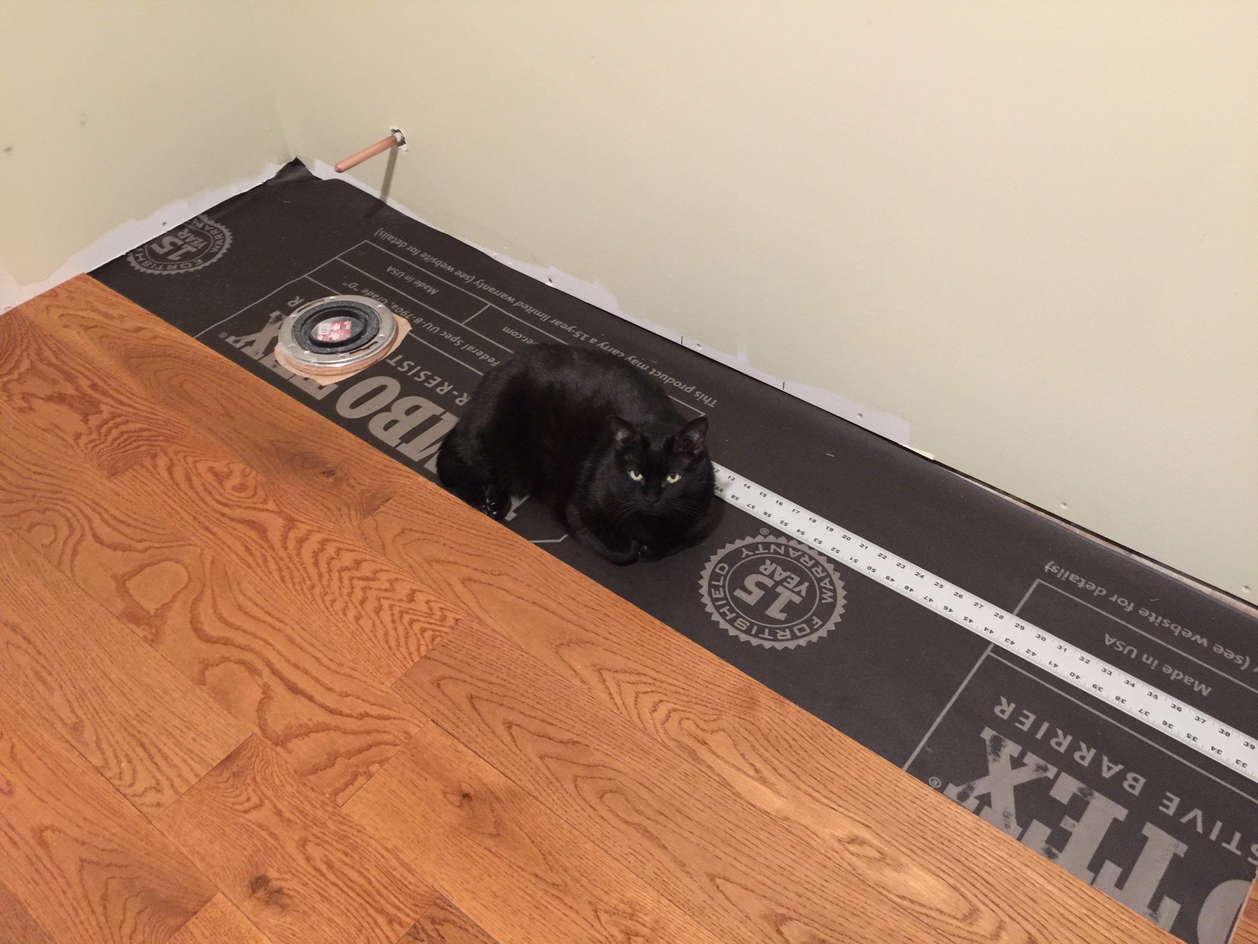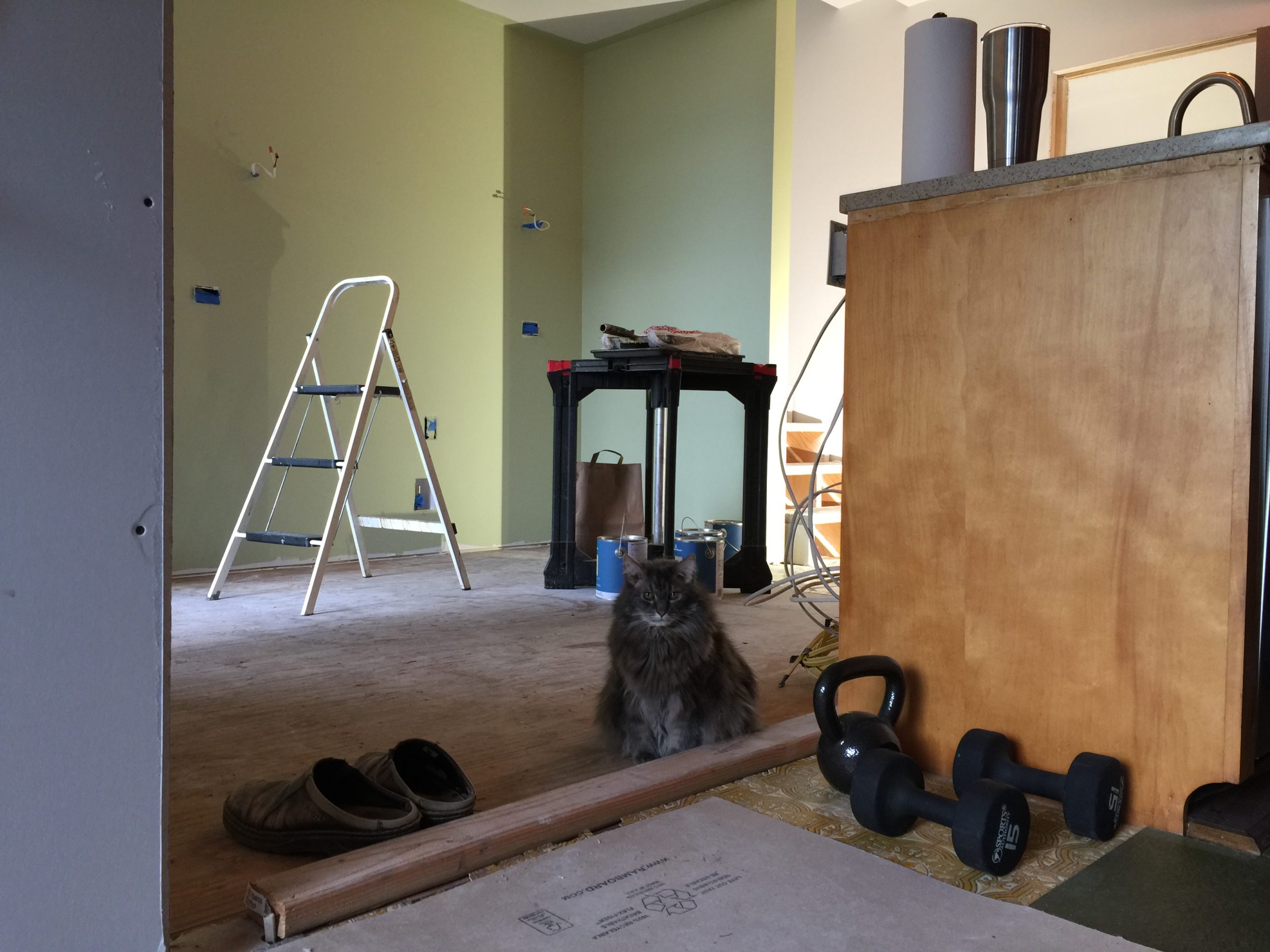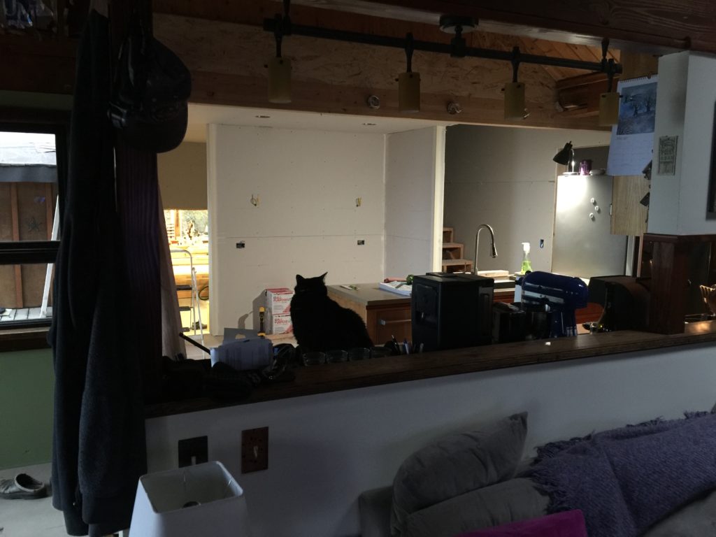 Inky was really, really good on the joists. She may be an old cat, but she has good balance. Had no compunctions about just stepping out the front door and walking out on them. She probably wonders where the deck went, though.