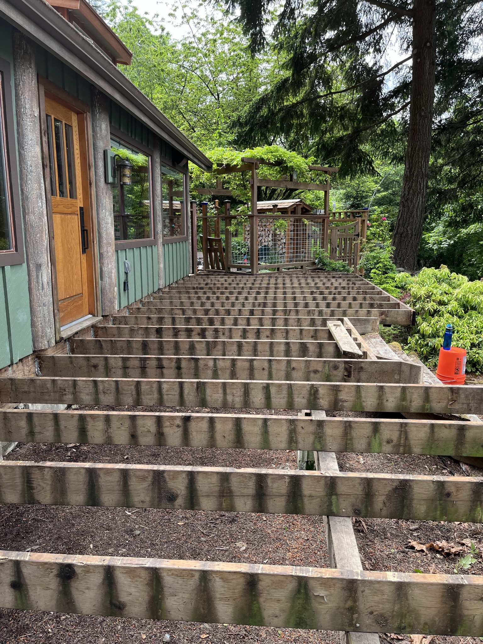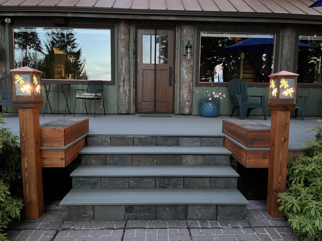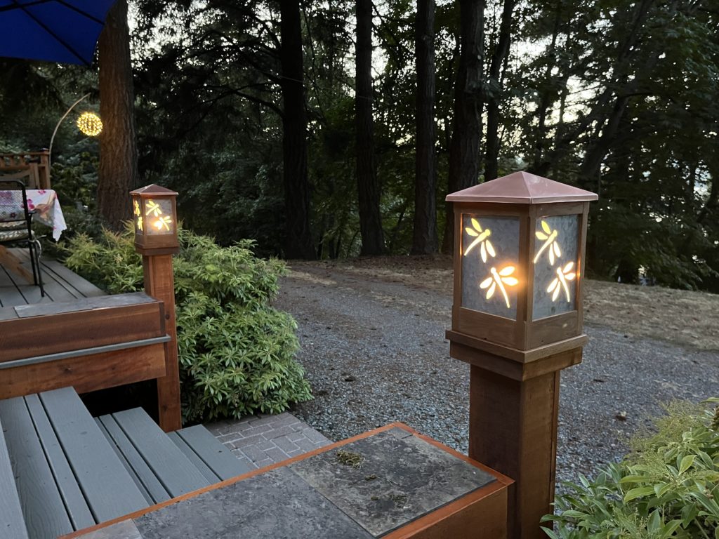 Finally getting some curb appeal around here! New cedar trim, new shingles, new light fixture, new electrical outlet, new paint around the window flashing, new security lights to see the ninjas with, new door mat, lots of improvements here.