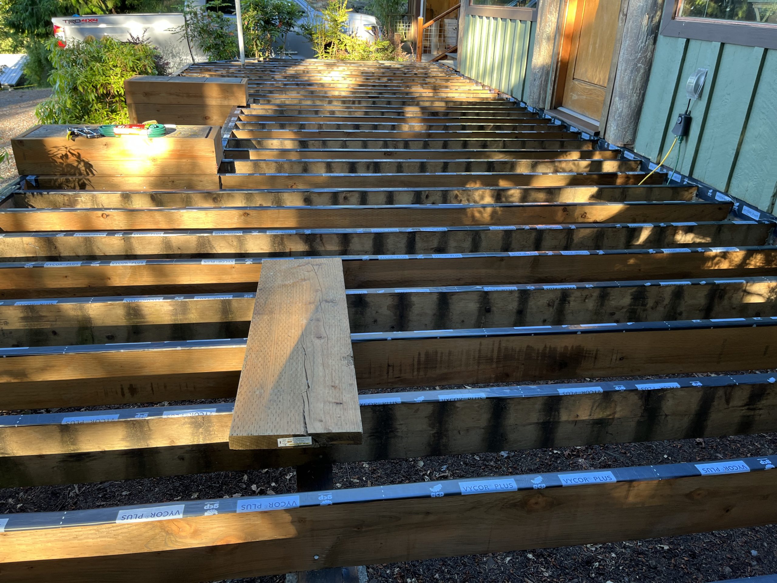 I’d say 9 out of 10 are in pretty good shape. I’m sure they’ll hold up. My biggest issue is there aren’t enough of them! These joists are spaced at 24″, and I need 12″ to 16″ spacing for the composite decking. I’ll be adding in new joists in between the existing ones.
