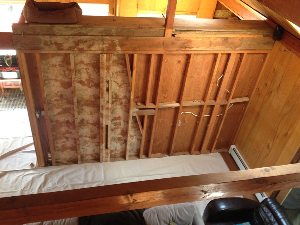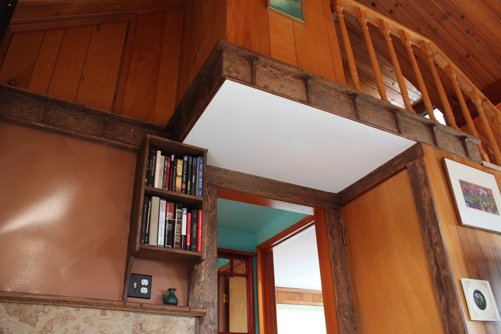 Oh, and that rectangle of drywall up there? That was wood paneling. Now it’s drywall. We cheer, seriously cheer, for every square foot of old paneling that leaves this house, never to return. We’ll paint it. It won’t be white for much longer.