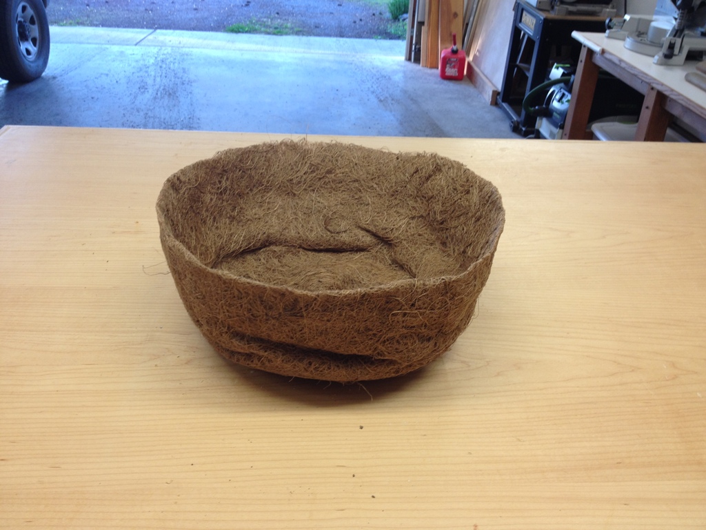 There. Now the prongs can hold a basket. I did wire the basket firmly in place and gave it some support so it wouldn’t deform too badly when I put dirt in it. That’s the last thing I’d need.