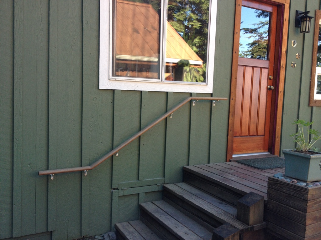 We’ve had this handrail on the side of our house since we moved in. I guess building codes require a handrail next to the stairs because they care about people, or something. It was installed at the last minute and at a very low budget. It wasn’t much to look at but I guess it got the job done. Well, I finally found something pretty cool to replace it with.