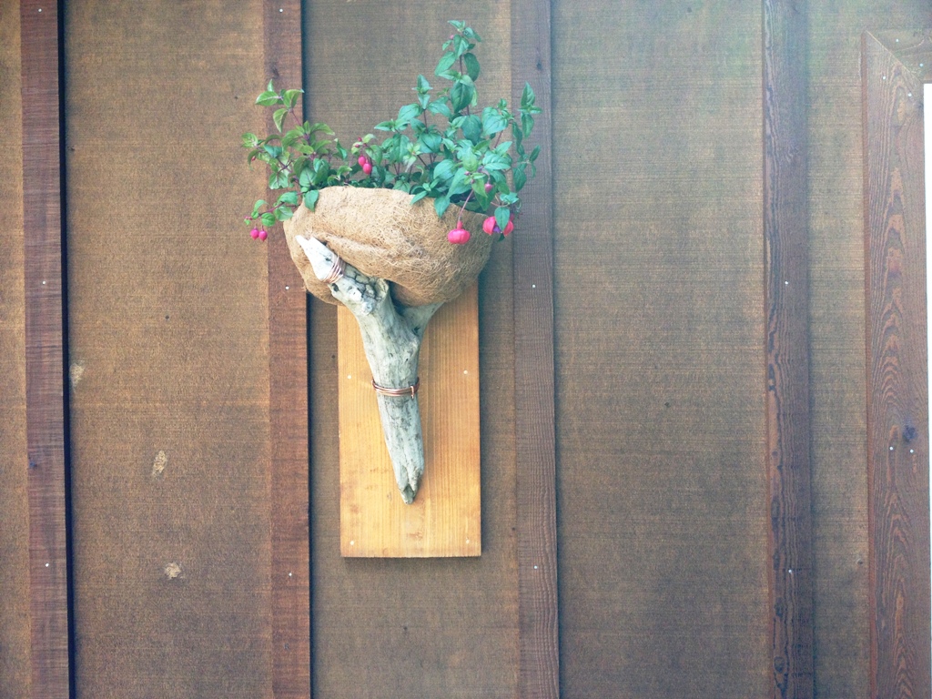 Yes, on occasion, I go down the artsy-craftsy path where it’s not always easy to tell the good ideas from the bad. Sometimes you just have to follow it and see how it goes. In this case, I think it went well. The driftwood I found looked like it could hold a potted plant, maybe something that trails down the sides. I initially thought to embed it in the ground but it would basically be a ground mounted deer feeder. That’s when I figured I could mount it on the wall, like a sconce. I just had to affix it to a slab of wood.