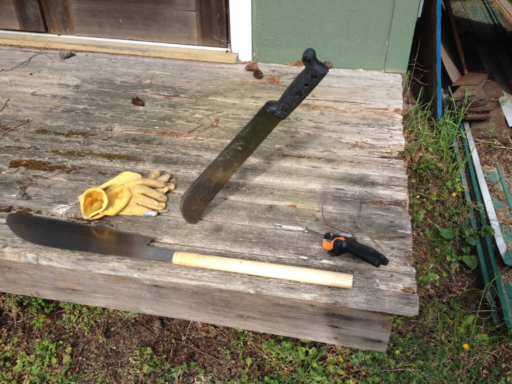 These were my gardening tools today. My big saw, the Fiskars trimmers and a $5 machete. Against the jungle, they just didn’t seem sufficient.