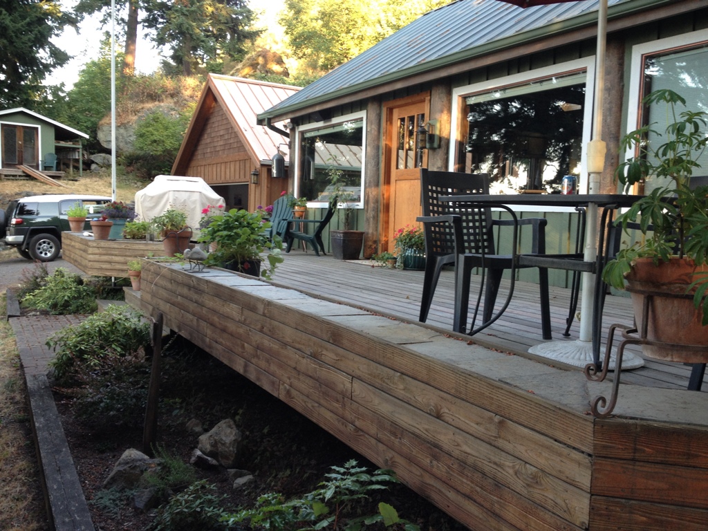 The view from the deck is nice. The pergola right now is just a skeleton, a frame of what it’s going to be. We’ll add pots and plants to it, maybe hang some kind of artwork, put in some patio furniture inside (somewhere to sit and roast marshmallows, maybe). It’s just going to be another space that we can enjoy.