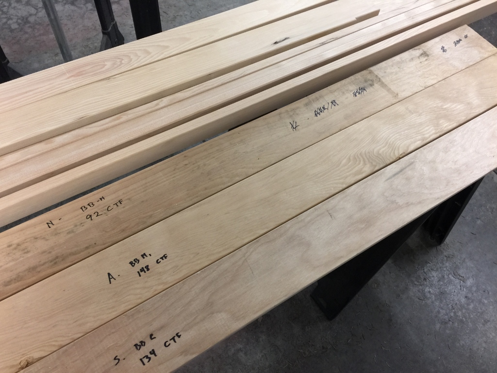 Well, despite the looming possibility of the power going out for a few days, I was able to get in the shop and finish up my stair project. Above is the jig I made to keep my drill holes at the correct angle for the iron balusters. That’s a 2″ thick piece of rock maple, and it held the angle great over all 19 holes I had to bore.