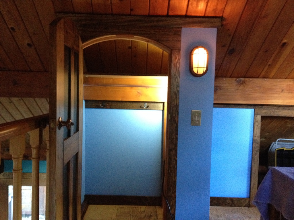 I even finished the inside of the closet. It looks like there’s a light inside but that’s just my work lamp. It’s an eight square foot room with a low ceiling. I’ve seen refrigerators bigger than that. It doesn’t get its own light.