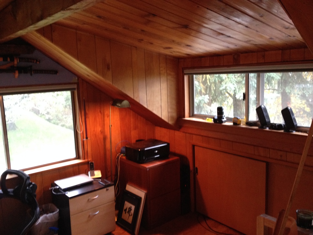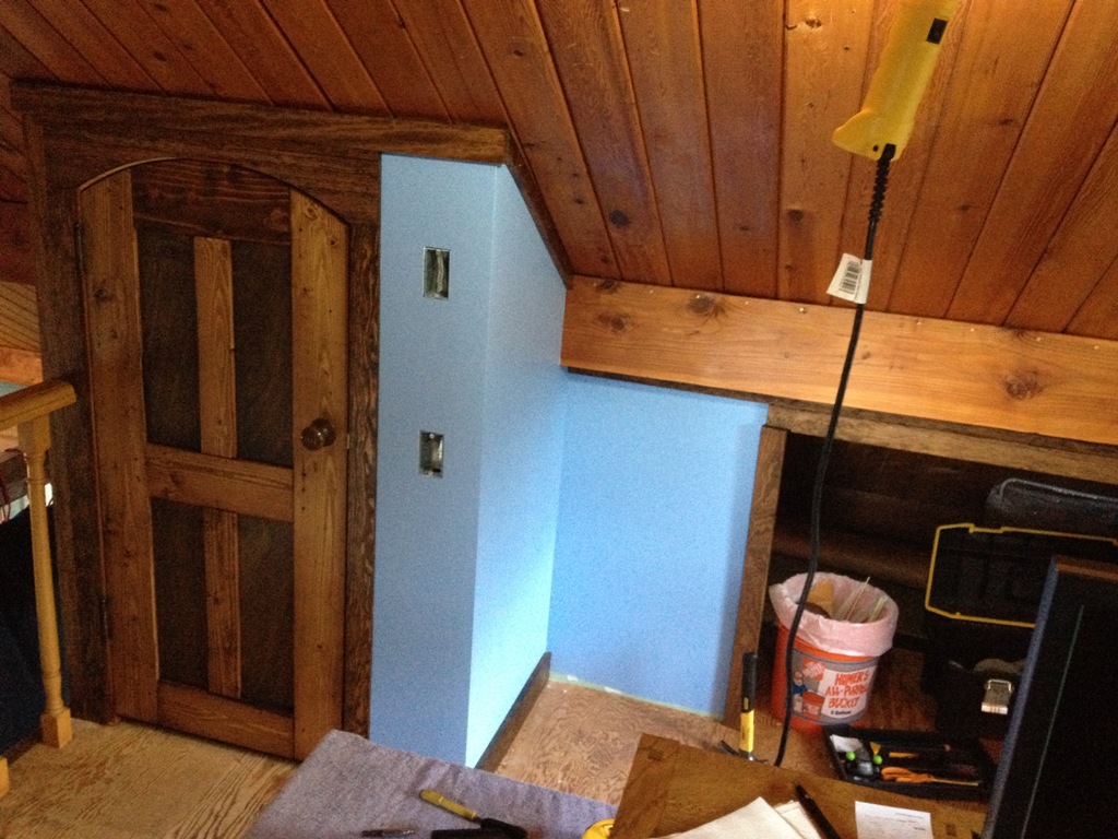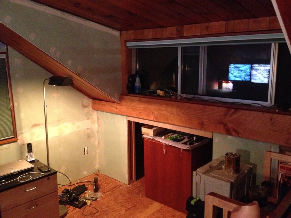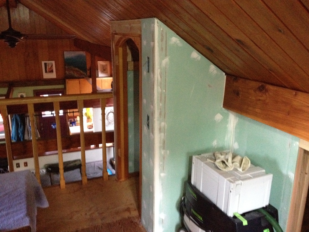 When we left off last time, the loft had become a bit of a war zone. Paneling had been torn off, framing had been nailed into place, drywall had been screwn on and joint compound was drying in the seams. In my head, these things take like an hour, but in reality it takes weeks.