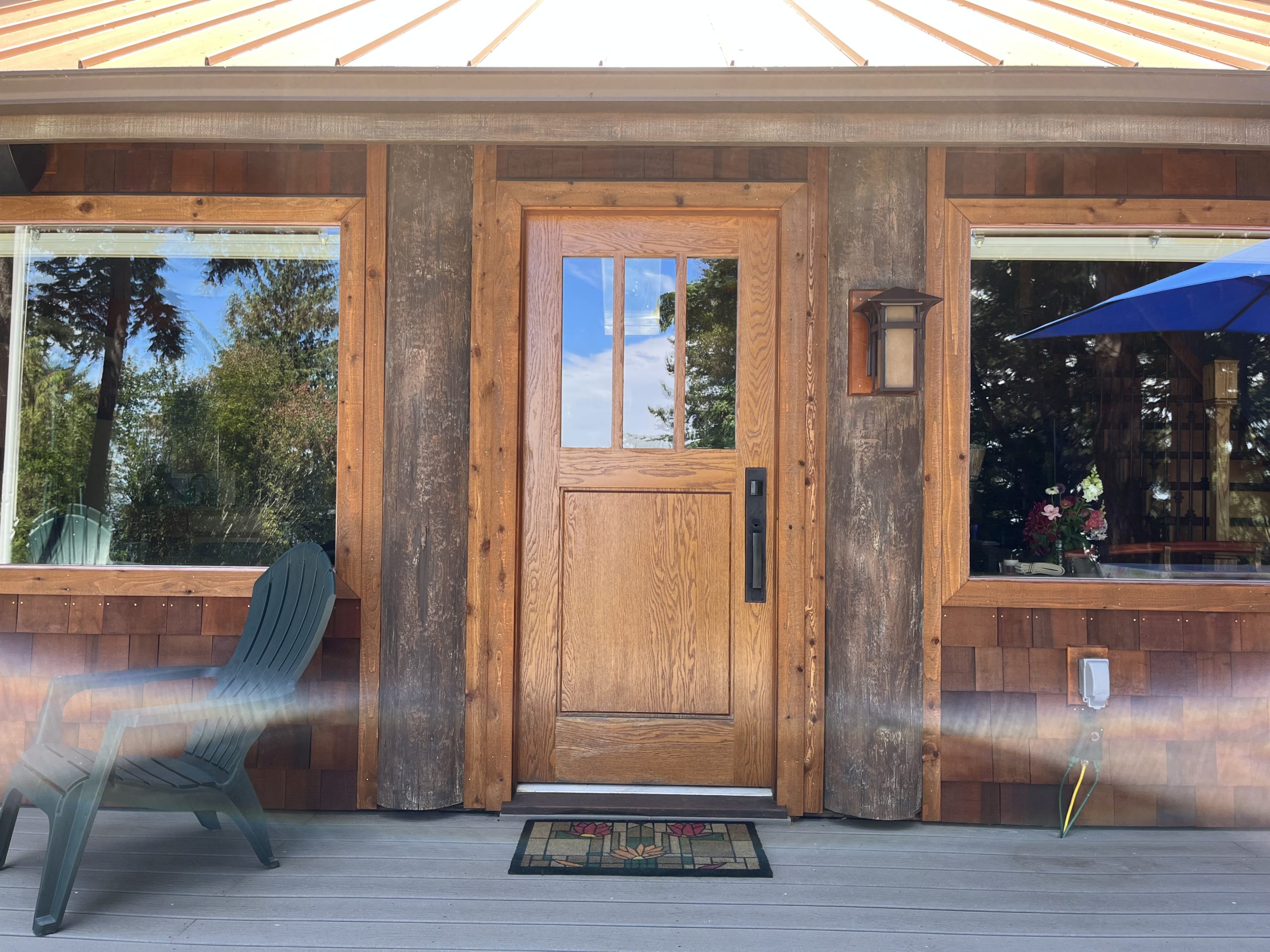 Finally getting some curb appeal around here! New cedar trim, new shingles, new light fixture, new electrical outlet, new paint around the window flashing, new security lights to see the ninjas with, new door mat, lots of improvements here.