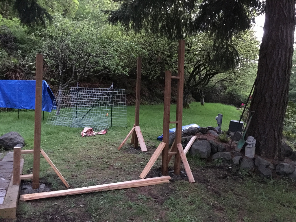 I used pressure treated lumber for posts, which is really awful stuff. It’s toxic, it’s a skin irritant, possibly carcinogenic, but it’ll last out here without rotting. That’s kind of what I was going for, fence posts that don’t rot in the first two years.