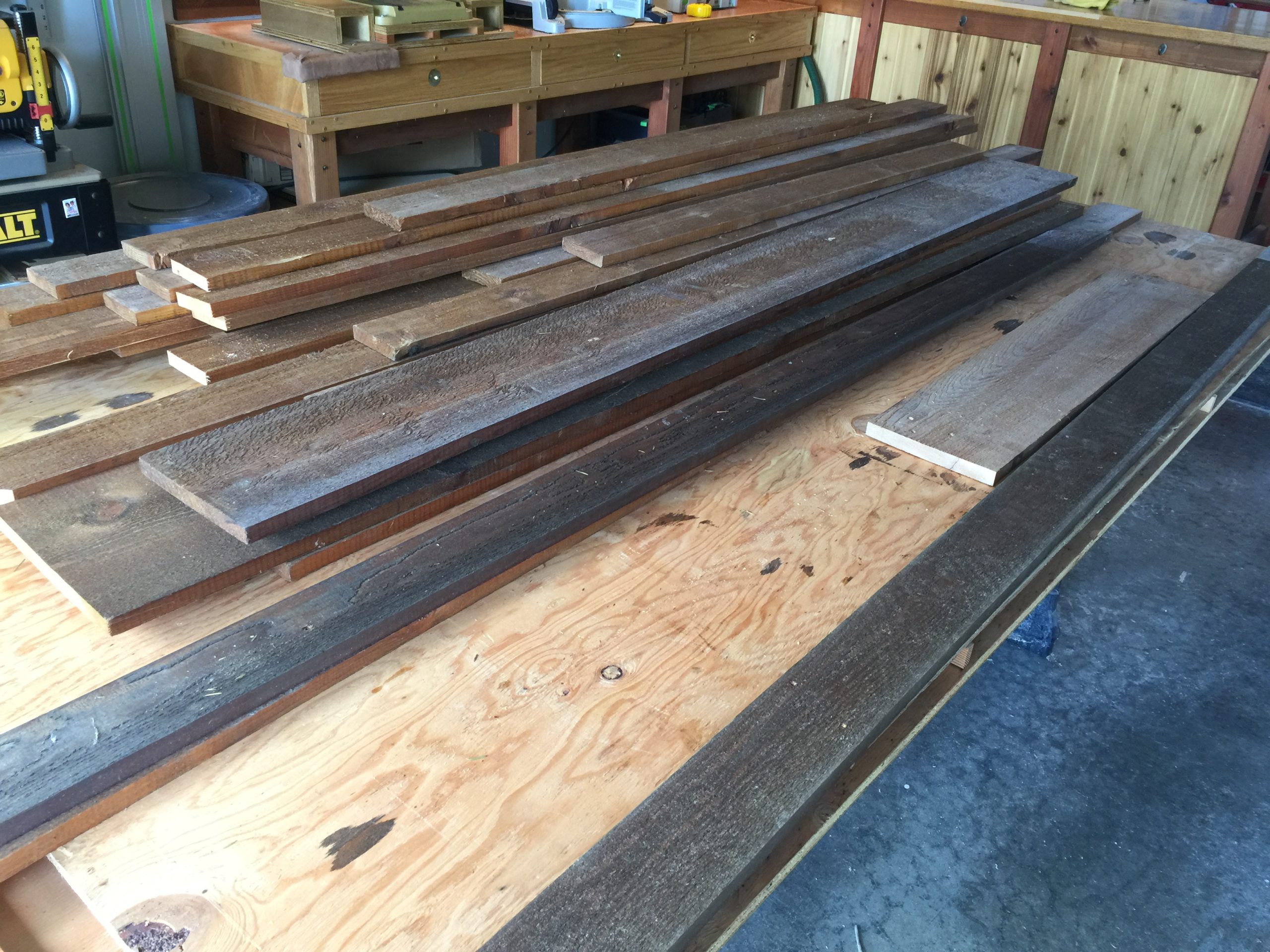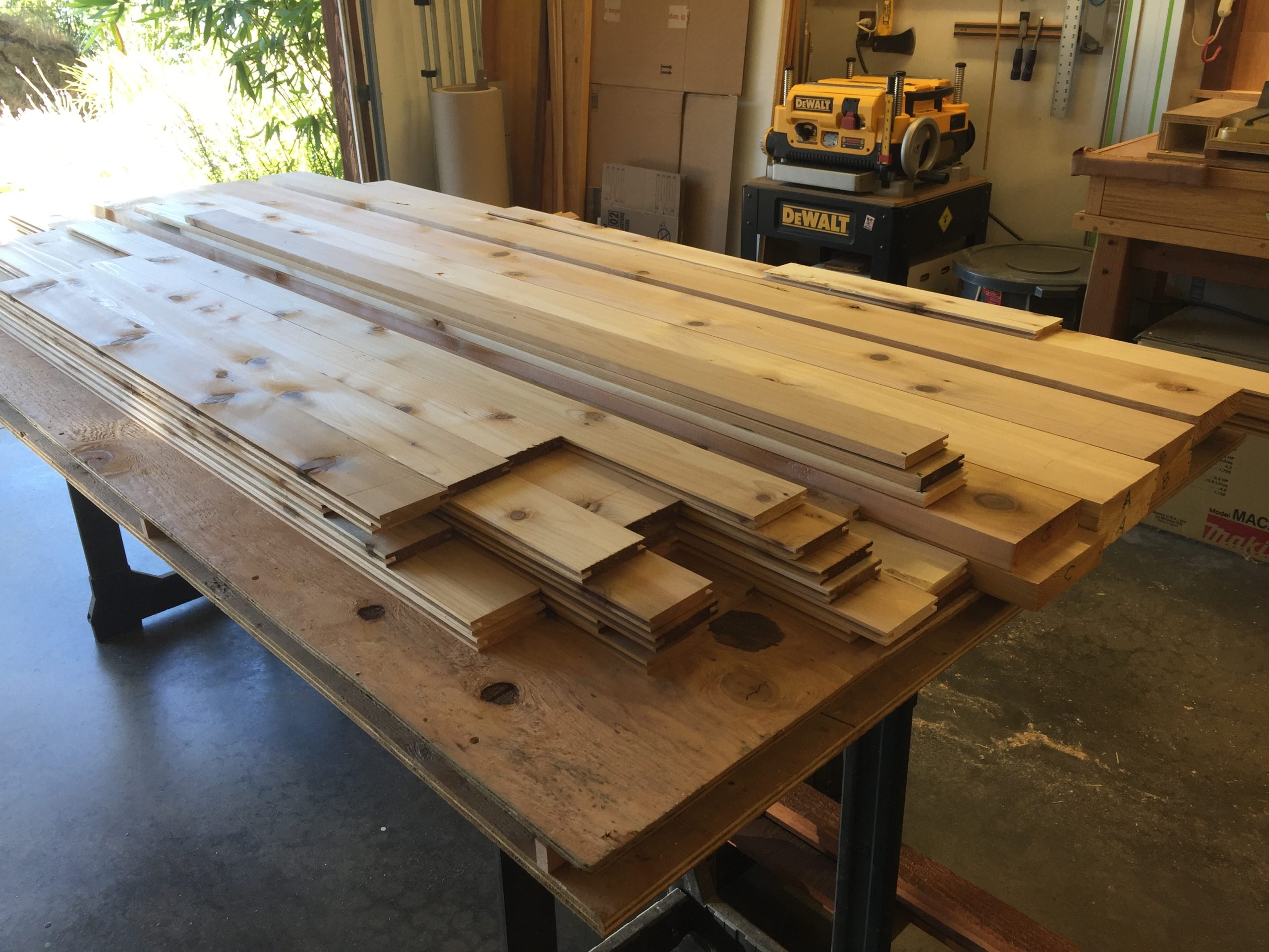 I spent about two days planing all that cedar. It’s all nice and smooth and milled down to a uniform thickness, but some of those old board were in really bad shape. It’s knotty, twisted, and has big fissures splitting the wood in two. I can probably only use 2/3 of it if I’m lucky.