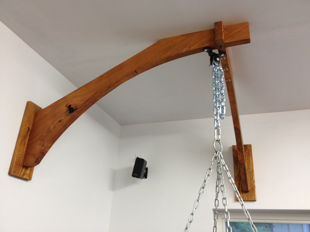 The final product works great. I still need to adjust the chain a bit but otherwise the bag takes impact well and I don’t feel like I’m going to pull the whole roof down when I work out.