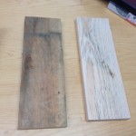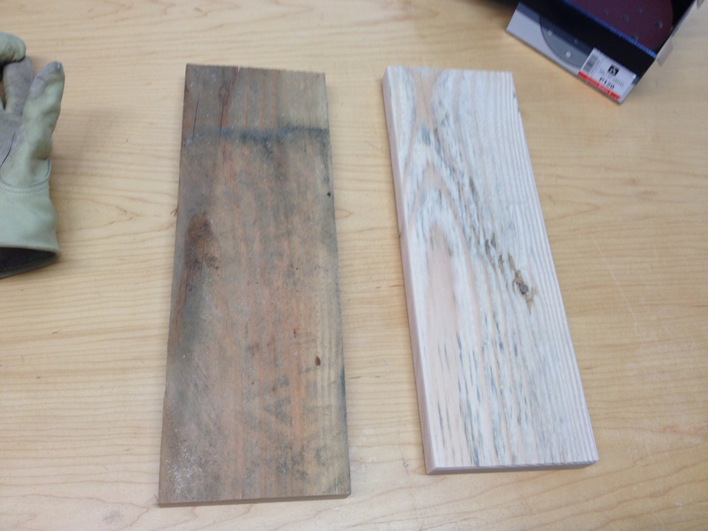 The piece on the left is as I found it. The piece on the right is after sanding. Turns out very nice.