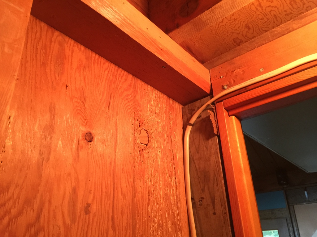 The pitted backside of the paneling is what rubs up against whatever clothes you deem fit to hide in here. You don’t store things in this oubliette as much as you just forget about them.