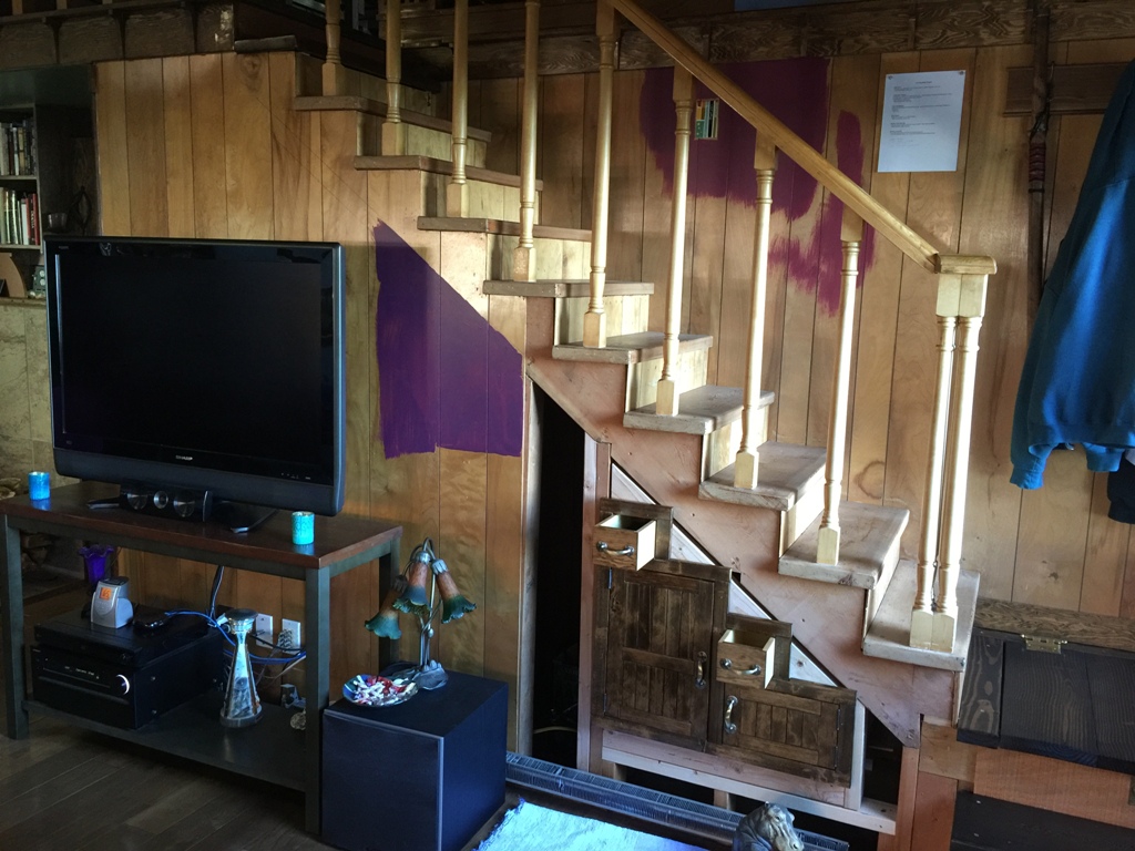 I’ve been staring at these awful stairs for years now, and the time has finally come for a little remodeling. Out with the paneling, in with new drywall. This is going to be a lot of work in a small tight space and it may not turn out like the front cover of anyone’s magazine, but anything will be an improvement.