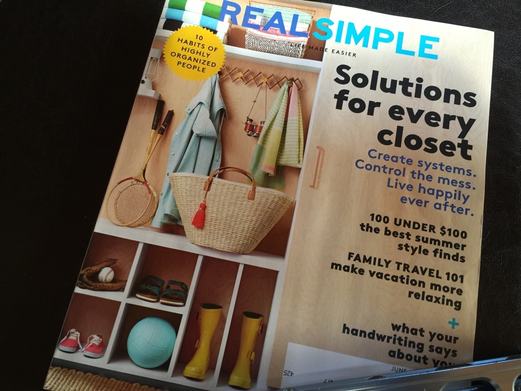 The pictures on these magazines crack me up. You know, if my closet only had to store twelve items or less, it might look so picturesque too. Yeah, all I need to store is a pair of antique tennis rackets, a cyan volleyball, the world’s cleanest baseball, and a basket that has no use and serves no purpose.