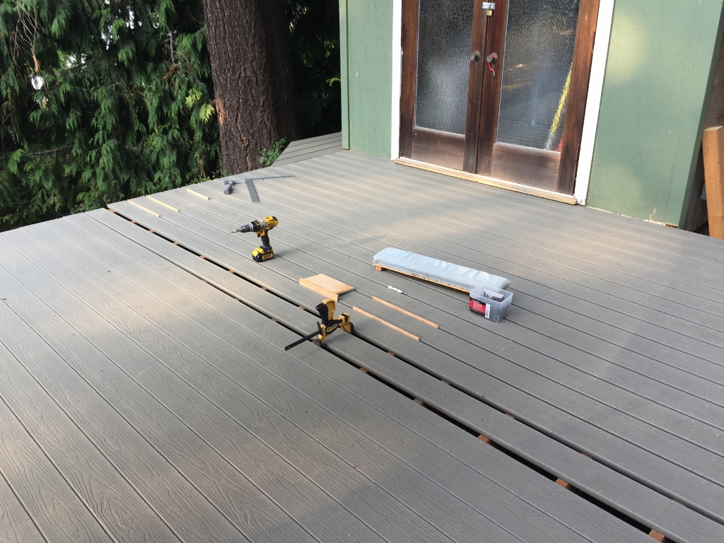 One of the funner bits of woodworking I got to do was make a cap for the half wall. I used one of the remaining 2×6’s I had left over from the garage construction, and planed it down to about 1 1/8″ so it doesn’t look like a 2×6. I had to cut holes for the posts and install them around like that. I was going to do some fancy pants joinery like triangular feather joints at the corners, but I really need to finish this project by 2016. And I have a full time job that eats up more of my time than I spend sleeping. So I’m probably just going to use tenpenny nails.