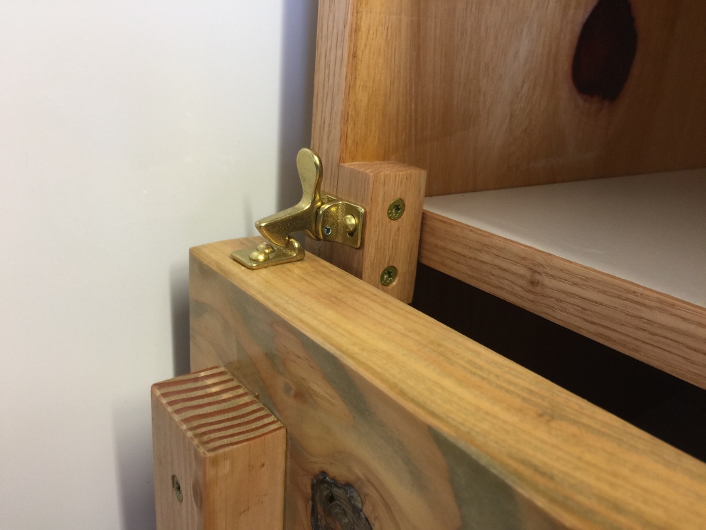 I went cheap for hardware, but made sure to use solid brass. It can get a little humid out in the garage.