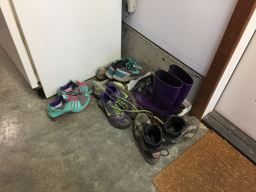 Okay, this is a problem that we’ve been tripping over for years. This little corner by the rusty fridge has stored our shoes, but I’ve always thought this was a wasted space. So much more can be done with this area.