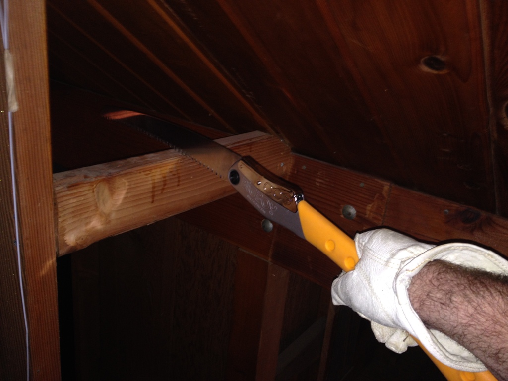 Instead of sawn-off hollow core doors dangling from a rusty rail, I’m going to make solid wood pocket doors to access the storage areas in the eaves.