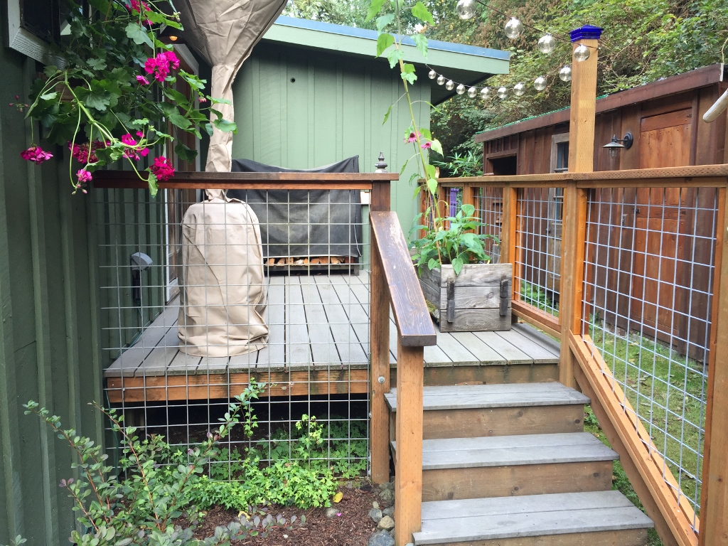 So, the back deck is one of the few places without a view of the sea, which means it generally gets put to the bottom of the list of places you’d want to hang out. But I don’t know, now it’s kind of nice back there. A private little nook. At some point, I’d like to get an awning of sorts just to keep it dry, or part of it dry, then we could sit out there year round. That big thing wrapped in canvas? That’s an outdoor propane heater!