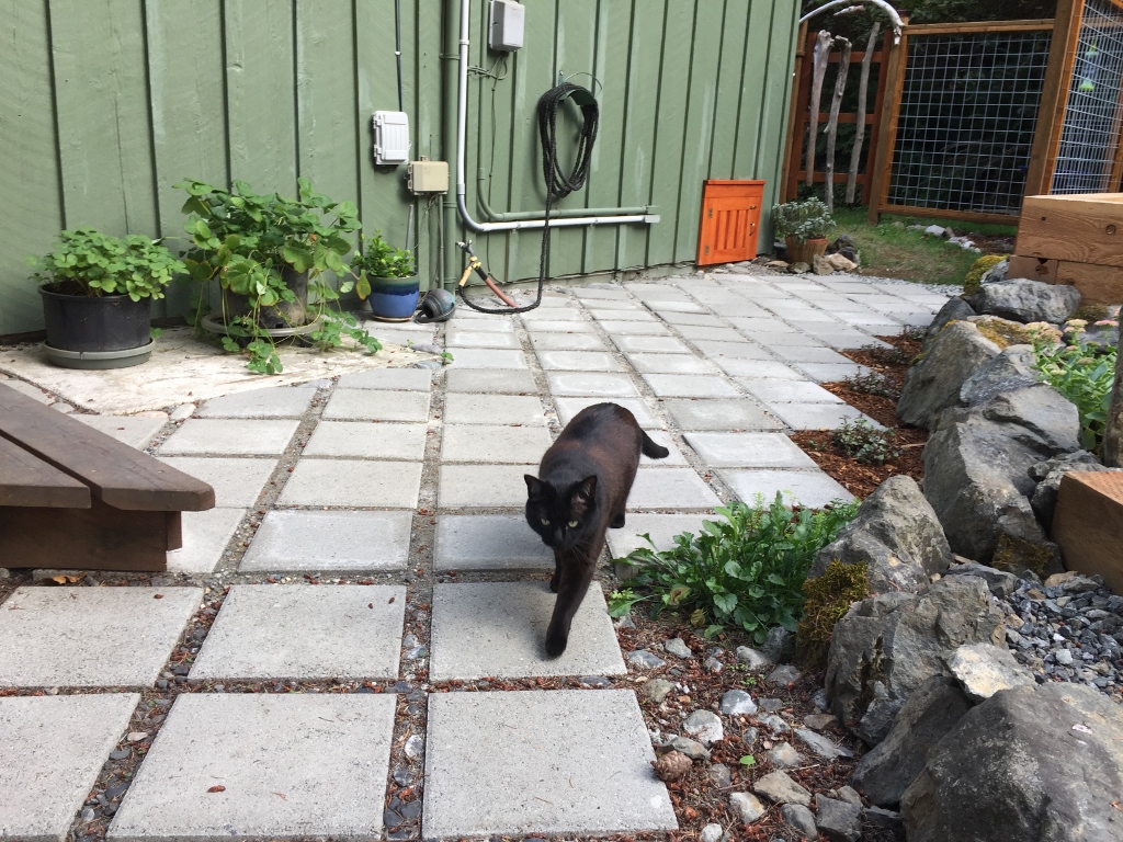 The pavers replace what was once this kind of muddy, weed covered pit. Gardening tools would accumulate in this area until they were needed elsewhere.
