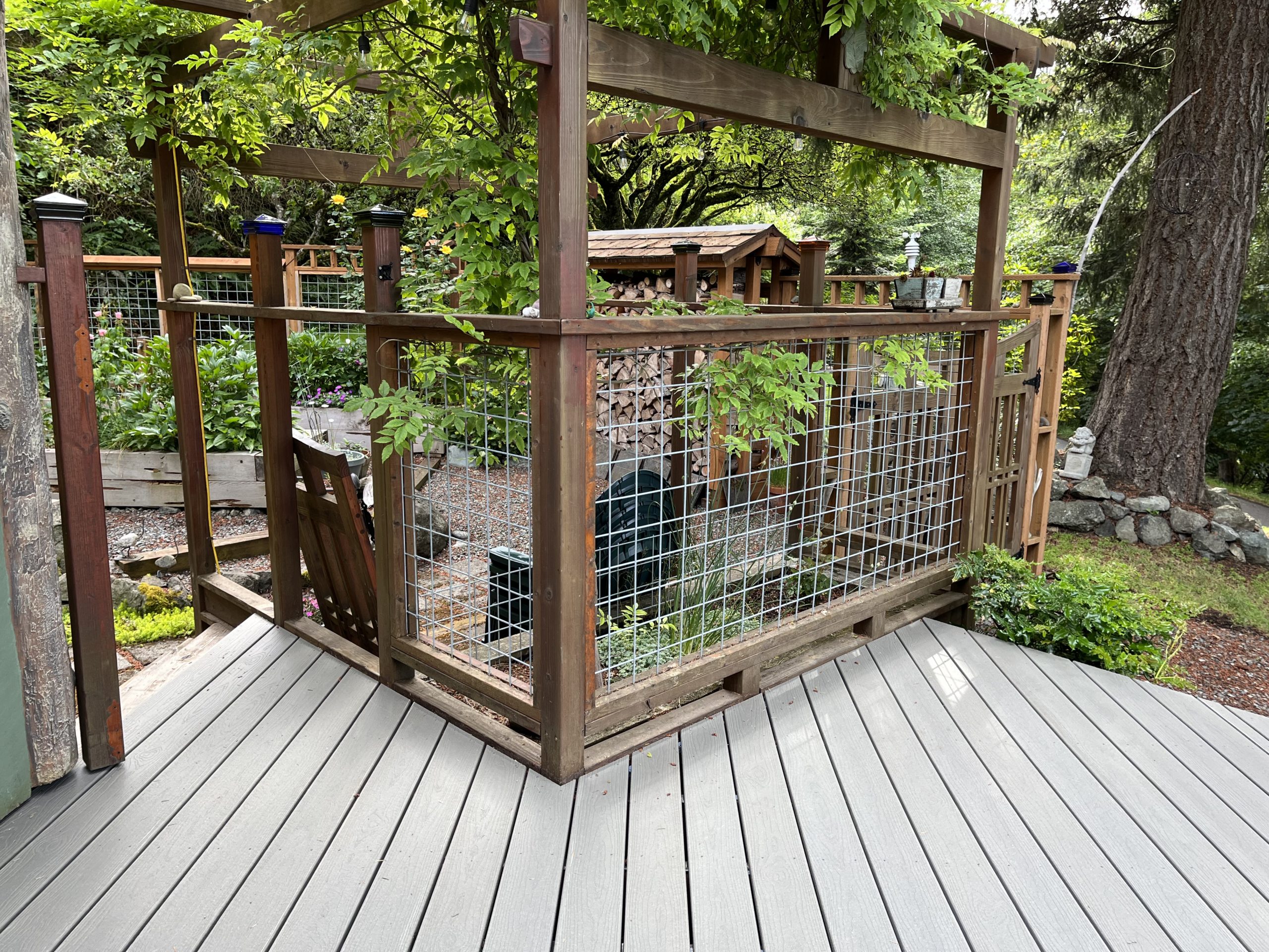 Oh, I don’t know, the Parkour Method of getting up on the deck helps keep me in shape.