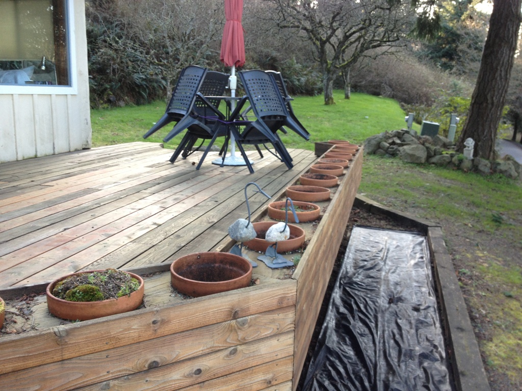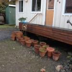 gnaws at the mindStaring at those pots day after day on our deck gnawed our minds from the inside out.  Not only did it look tasteless and tacky, but it made no logical sense.  Were we really going to put potting soil in every damn one, pay money (real money not monopoly money but legal tender for all debts public and private) for plants that for all intensive purposes is just DEER FOOD.  You may as well just fill them with kibbles and bits and let the critters go to town.
