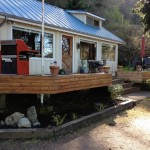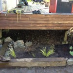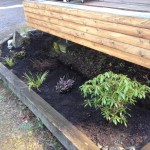 We worked pretty hard today, getting all those plants in and the rocks set down.  Our ground here is soft and digs pretty easy, but it’s very, very rocky.  Just digging a hole for one plant and you’ll pull out some rocks the size of a small head.  The plants look great, and so far the deer have sniffed them but they haven’t nibbled.  We left the underside of the deck open, for now at least.  We also left the wooden beams as a border for the planting area.  I hate them and someday they will go away, but for now they serve a purpose.  And I got a hundred and ninety things on my to do list before I go and fix something that isn’t broken.