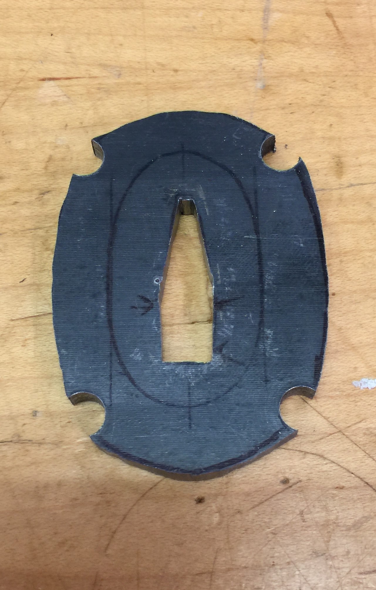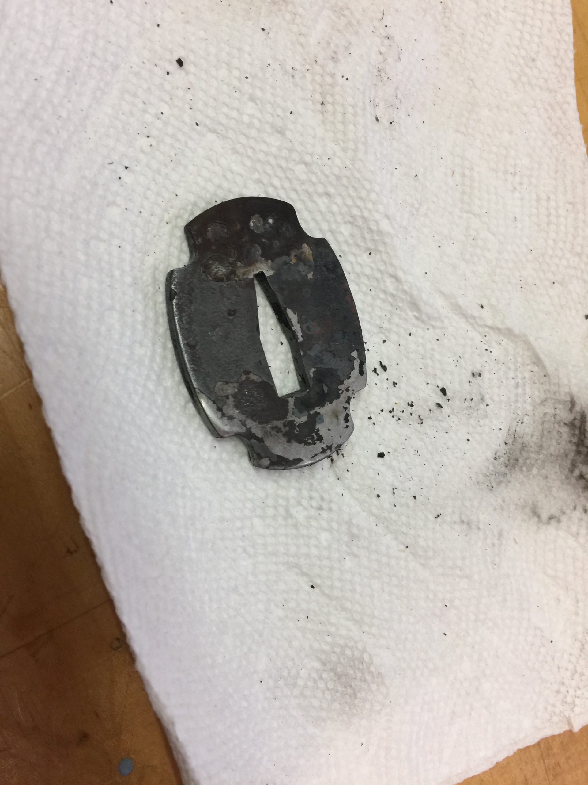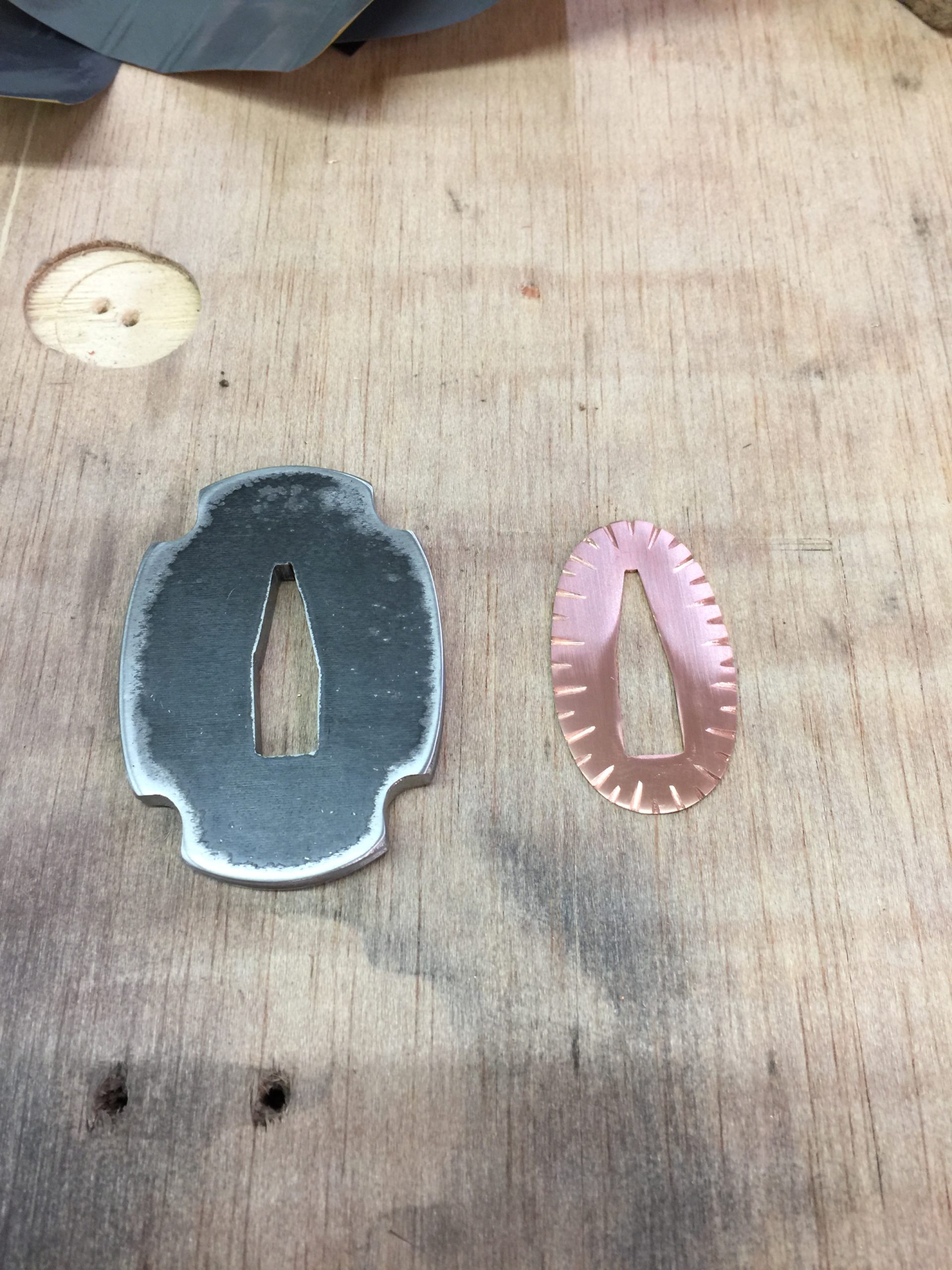 I decided on four corners and not six. The hole for the blade should be well fitted. Many historical tsuba had copper welded in there at the ends, as the soft metal provided a good fit that wouldn’t damage the blade if it rubbed a little. I’m not that studious, nor do I think my sword needs it.